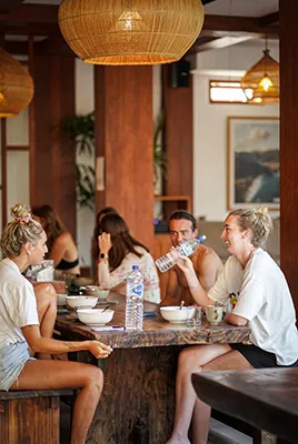 Community and fun are at the heart of everything we do at LMBK. We strive to bring people together around the sport of surfing, but we also hope you experience everything that Lombok has to offer! Share a meal and meet fellow travelers at our family dinner before heading into town to explore the local bars and restaurants.