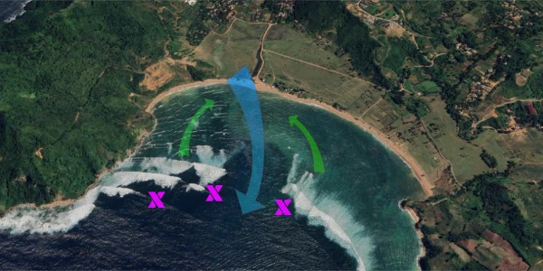 Right Break: A smooth right-hander with a fast inside section, performing best at low to mid tide. This wave provides a thrilling ride with a bit more predictability. When it is bigger, there is an fun wave inside on the right at high tide.