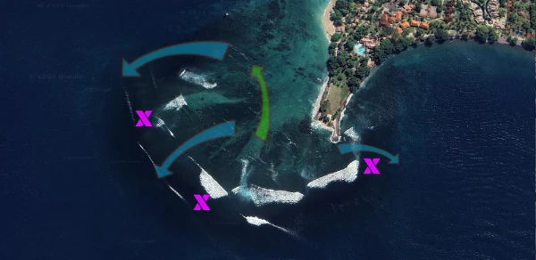 Being on the West Coast, Senggigi works best when the southern spots are too big or windy, or during large SW swells. It is a fantastic “Plan B” when Kuta is blown out.