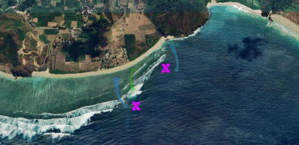 Serangan Reef, situated within the larger bay of Selong Belanak, is a prominent but empty surf spot in Lombok known for its long right-hand waves. The break features a fast and steep takeoff, offering